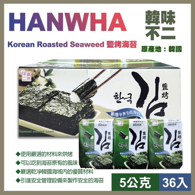 【韓味不二】鹽烤海苔( 5g*36入)$579