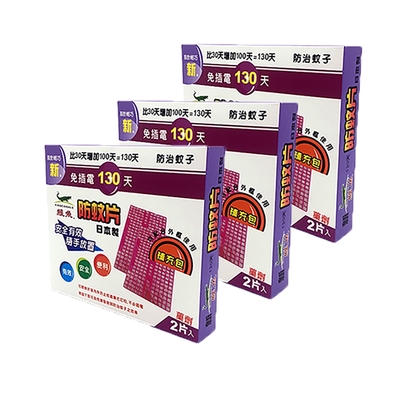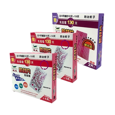 新鱷魚免插電130天防蚊片X2+補充防蚊掛2片裝X1盒