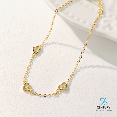 【Century】 S925 鍍真18K金 三愛心鋯石手鍊