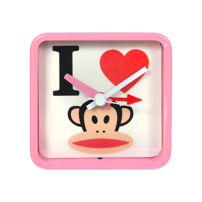 PAUL FRANK 大嘴猴 潮流時尚 方形指針鬧鐘-粉框白面