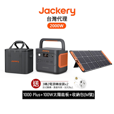 Jackery 1000 Plus (2000W) +100W太陽能板+收納包(M號) 儲能行動電源 戶外電源 緊急發電 儲能電源 露營電源 (先創代理公司貨$43,000