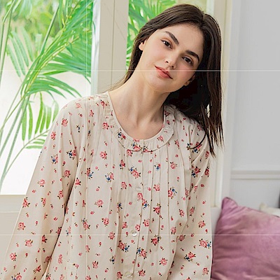 【Kosmiya】1套 帶胸墊 棉質緹花長袖睡衣/女睡衣/居家服/兩件式睡衣/胸墊睡衣(3色可選/均碼/加大碼)$468$599