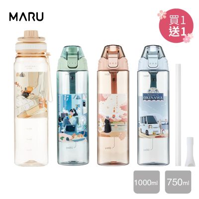 買1送1【Maru 丸山製研隨身水壺1000ml】 Tritan彈蓋握把好提吸管隨身水壺1000ml(三款可選)