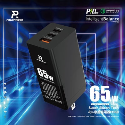 PowerRider PD65W - 65W 3孔PD快充折疊充電器