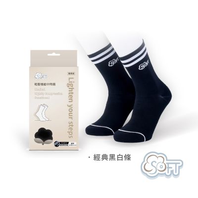 SOFT 醫療級 輕壓柔軟舒適機能襪 中筒襪 止滑襪 運動襪 瑜珈襪 經典黑白條 1雙$580