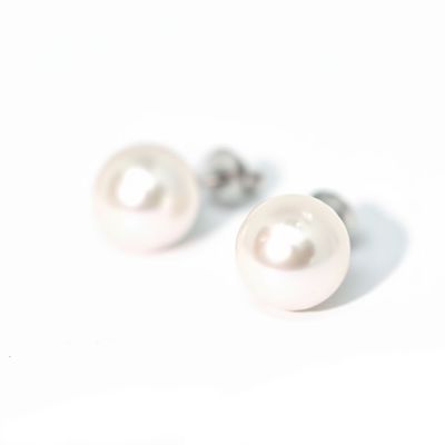 EM【eileen me】精選 經典款天然珍珠耳環 約7~7.5mm 麵包珠夾式耳環 極亮珍珠光澤$3,280