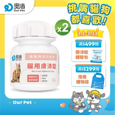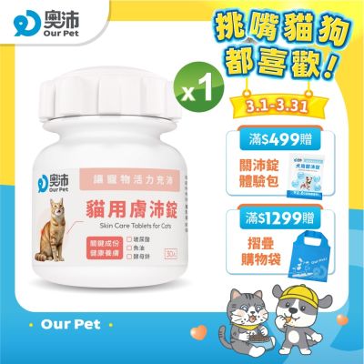 【奧沛 OurPet】貓用膚沛錠x1瓶(30顆/瓶)|貓皮膚保健品|玻尿酸|神經醯胺|乳酸菌|酵母鋅