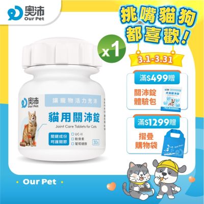 【奧沛 OurPet】貓用關沛錠x1瓶(30顆/瓶)|貓關節保健品|軟骨素|葡萄糖胺|UC2