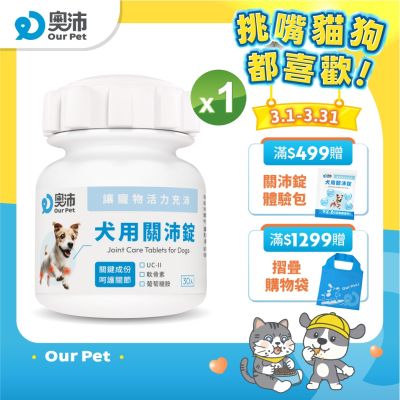【奧沛 OurPet】犬用關沛錠x1瓶(30顆/瓶)|狗關節保健品|軟骨素|葡萄糖胺|UC2