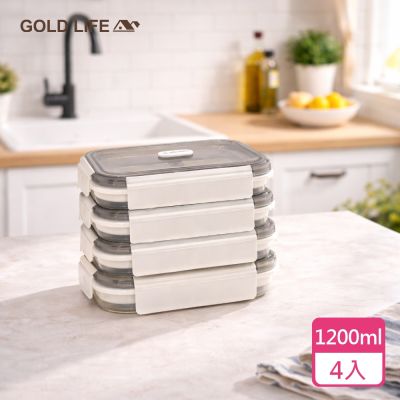 【GOLD LIFE】4入組-好收好帶可折疊便當盒(分隔/可微波/收納)$1,280