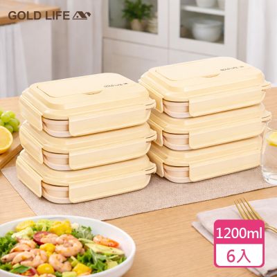 【GOLD LIFE】6入組-好收好帶可折疊便當盒(分隔/可微波/收納)$1,880