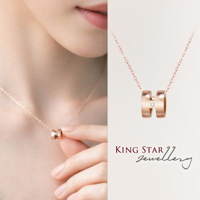 King Star 18K玫瑰金 天然鑽石項鍊-任選(贈925銀鍊)