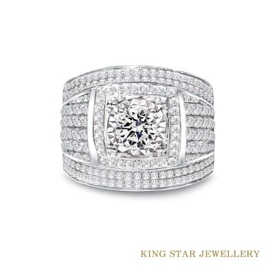 券King Star 一克拉 鉑金台 DVS 3EX 天然鑽石 戒指 豪華滿鑽款 男戒(3克拉視覺效果)