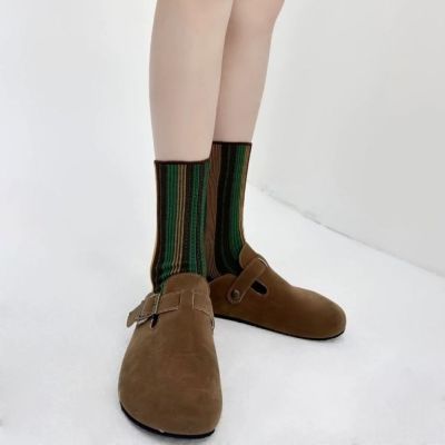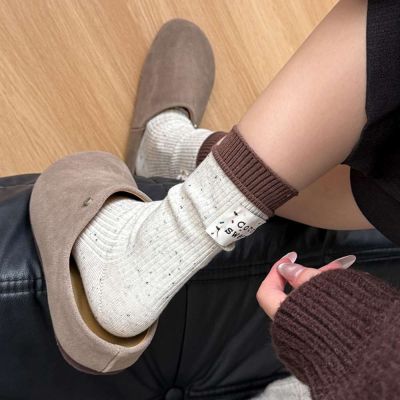【HandStyle】女襪 時尚撞色條紋點子加厚拉毛中筒棉襪(82025)