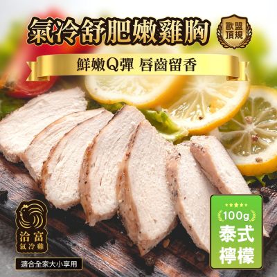 - 使用鮮嫩Q彈洽富氣冷雞胸肉【洽富氣冷雞】鮮嫩舒肥雞胸100g-泰式檸檬(滿1200免運-冷凍)$59