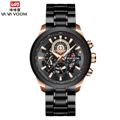【VA VA VOOM 味味寶】韓版潮男真三眼多功能鋼帶錶 VA-2772-JH$1,980
