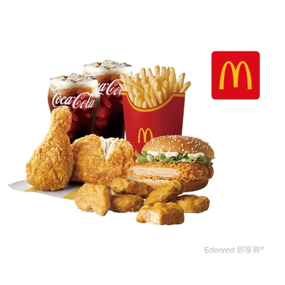 【麥當勞】麥脆鷄腿2塊 (原味)+勁辣鷄腿堡+麥克鷄塊6塊+薯條(大)+可樂(中)*2好禮即享券$400