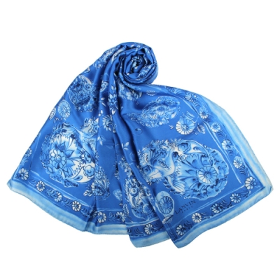 LANVIN 森林花鳥大絲巾-藍色$8,400