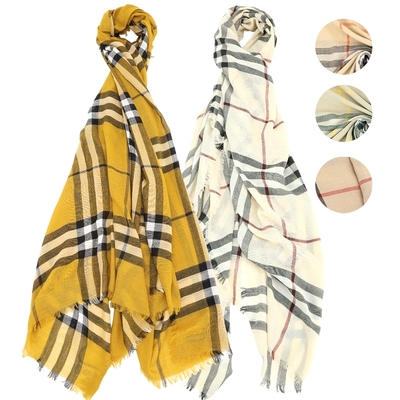 BURBERRY 巴寶莉 [專櫃$16500] 輕盈羊毛格紋流蘇圍巾(200x90CM)-多色可選