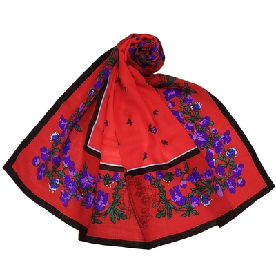 DIOR 迪奧 CD繩索LOGO典雅花卉羊毛混絲大披肩圍巾-紫花/紅色$10,23589折