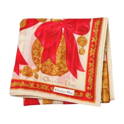 Christian DIOR 繽紛白底紅邊玫瑰花園圖騰字母LOGO帕領巾(48CM)