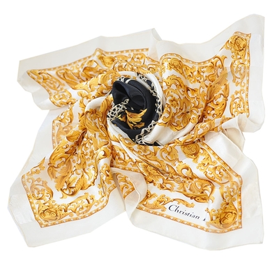 Christian DIOR 繽紛金飾懷表圖騰字母LOGO帕領巾(米白系/48CM)