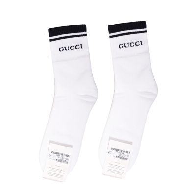 GUCCI LOGO純棉運動長襪(白色/黑色)