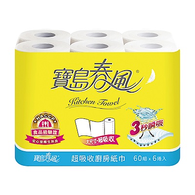 寶島春風捲筒廚房紙巾60組x6粒/串