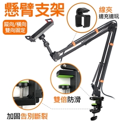 懸臂桌面手機/平板支架 桌面夾式懶人支架 360度旋轉 追劇 直播架