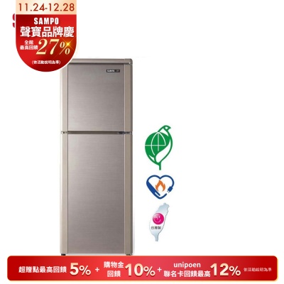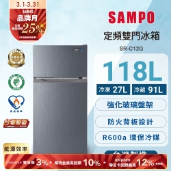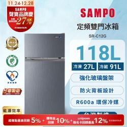 SAMPO聲寶 118L定頻雙門電冰箱SR-C12G 含基本安裝+舊機回收$8,790$9,252