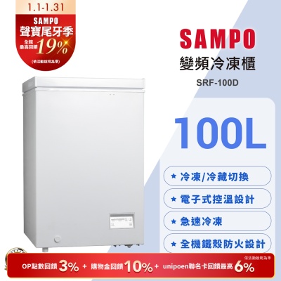 SAMPO聲寶 100L變頻臥式冷凍櫃含基本安裝+舊機回收[箱損新品]$7,150$7,526