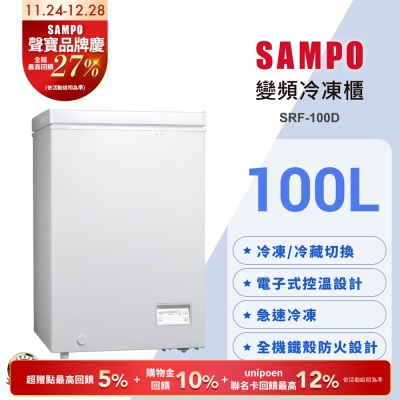 SAMPO聲寶 100L變頻臥式冷凍櫃含基本安裝+舊機回收[箱損新品]$7,150$7,526