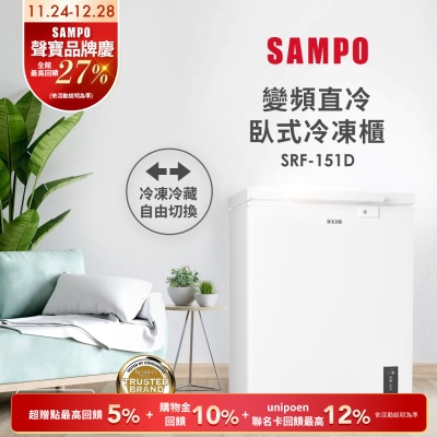 SAMPO聲寶 150公升變頻臥式冷凍櫃 含基本安裝+舊機回收[箱損新品]$8,41585折