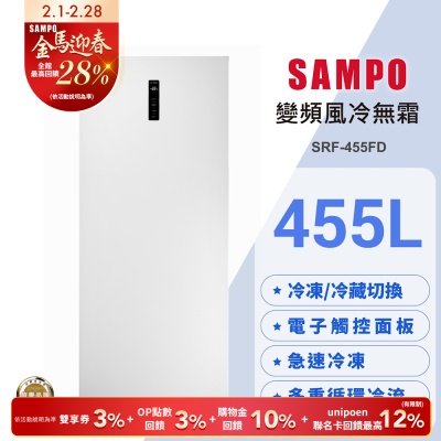 SAMPO聲寶 455公升變頻直立式風冷無霜冷凍櫃 箱損新品含基本安裝+舊機回收$20,943$22,045
