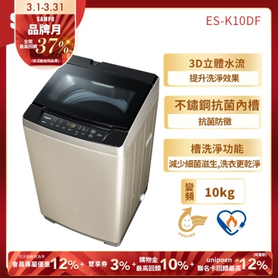 SAMPO聲寶 10公斤窄身變頻單槽直立式洗衣機ES- K10DF香檳金 含基本安裝+舊機回收$8,990$9,463