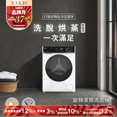 SAMPO聲寶 10公斤抑菌蒸能洗 洗脫烘變頻滾筒洗衣機含基本安裝+舊機回收[箱損新品]$13,300$14,000