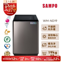 【SANLUX 台灣三洋】18KG 變頻直立式超音波洗衣機 SW-19DV10$18,563$19,540