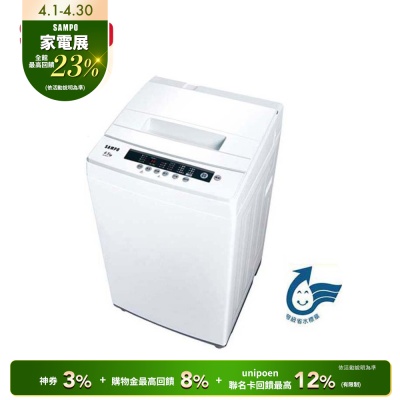 - 結帳享優惠★刷聯名卡最高6%回饋SAMPO聲寶 7.5公斤定頻直立式洗衣機ES-B08F珍珠白 含基本安裝+舊機回收$6,990$7,3574.9(4)限時下殺券