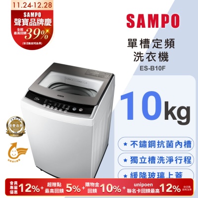 SAMPO聲寶 10公斤定頻直立式洗衣機ES-B10F 含基本安裝+舊機回收$7,490$7,884
