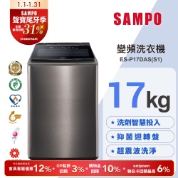 SAMPO聲寶 13公斤定頻直立式洗衣機ES-H13F(G5) (含基本安裝+舊機回收)$11,900$12,526