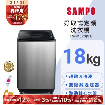 SAMPO聲寶 18公斤定頻直立洗衣機ES-N18VS(S1) 含基本安裝+舊機回收$18,990$19,989