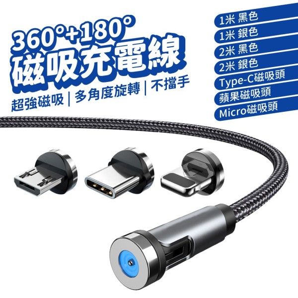 540度旋轉磁吸編織充電線 三合一磁性設計 Micro接頭 黑色