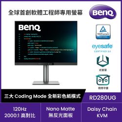 BENQ RD280UG 4K 120Hz 程式設計護眼螢幕 (28型/HDMI 2.1/USB-C(90W)/KVM/菊鏈串接)