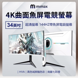 米覓 mimax 4K電競魚屏曲面螢幕 34吋 曲面螢幕 電腦螢幕 顯示器 螢幕