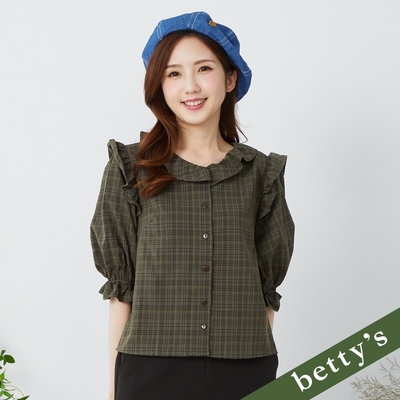 betty’s貝蒂思 雪紡格紋荷葉邊V領襯衫(深藍)$546