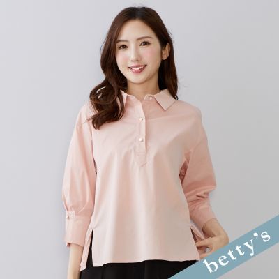 KeyWear奇威名品 泡泡袖鑽釦七分袖襯衫-粉紅色