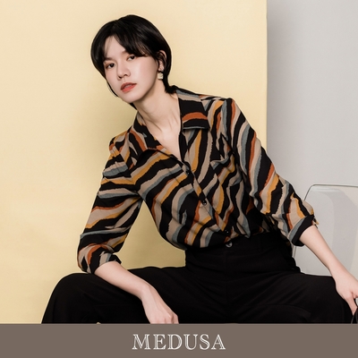 現貨【MEDUSA 曼度莎】彩色斑馬紋雪紡襯衫(M-2L)|女雪紡上衣 長袖上衣$1,17385折