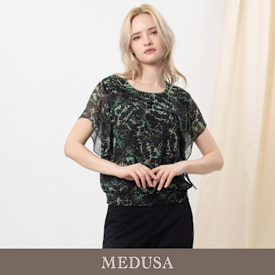 現貨【MEDUSA 曼度莎】森林綠斜蓋荷葉雪紡上衣(M-2L)|女短袖上衣 雪紡上衣 優雅穿搭$1,580