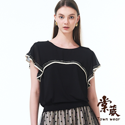 【TOWNWEAR棠葳】簡約撞色雪紡上衣(中大尺碼/女上衣/女上著/拼接/氣質/百搭/短袖)$1,500