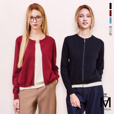 MYVEGA麥雪爾 撞色假兩件雙向拉鍊針織上衣-共三色$1,665